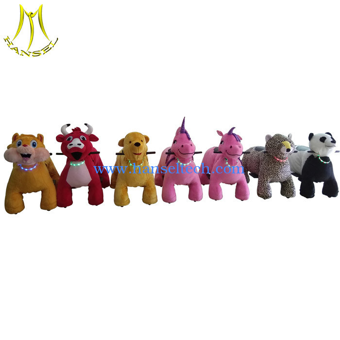 Hansel plush motorized animals are battery operated with coin or non coin type animals,it can walking in outdoor and indoor playground,with its attractive appearance to consumers and fast profits to the developer,more and more investors are join this business.it is available for shopping mall,amusement park,game center,parties,indoor or outdoor playground,ect.