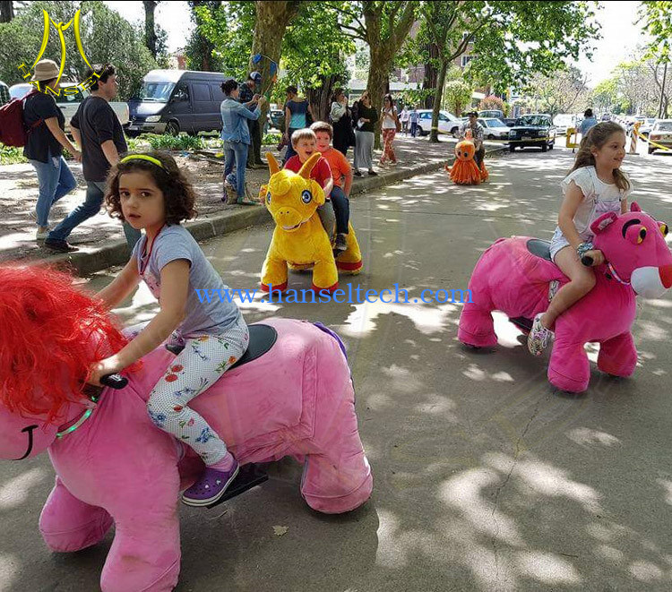 Hansel company manufacturer those electronic riding animals, known as Motorized animals since 2008. These portable amusement rides, which are battery operated, are sure to be a hit with your little children. With an array of musical genres to choose from while riding, as well as forty different animals to choose from–Hansel Motorized Animals a perfect opportunity to foster your child’s sense of individuality in a safe and structured environment. Still a little skittish of turning the reins over to the little ones? No worries, each animal is able to withstand a weight of up to 200 pounds, so you can take a ride with them if you’d like.Hansel plush motorized animals are battery powered with token or non token can move in any flat ground,people from all ages can ride on it for fun,Hope you will join us soon. (^_^)