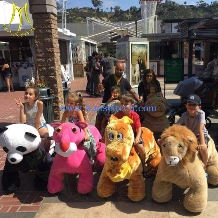 Hansel plush Motorized animals are coin operated or time setting amusement rides that work with rechargeable batteries, can go forward and turn left and right with music. They are the current trend for child amusement. the battery is rechargeable and coin operated motorized animal is making them easy to control for parties and businesses. With every purchase of a coin operated electronic animal scooter, fifty tokens will be included at no extra cost!