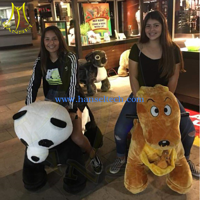 Hansel plush Motorized animals are coin operated or time setting amusement rides that work with rechargeable batteries, can go forward and turn left and right with music. They are the current trend for child amusement. the battery is rechargeable and coin operated motorized animal is making them easy to control for parties and businesses. With every purchase of a coin operated electronic animal scooter, fifty tokens will be included at no extra cost!