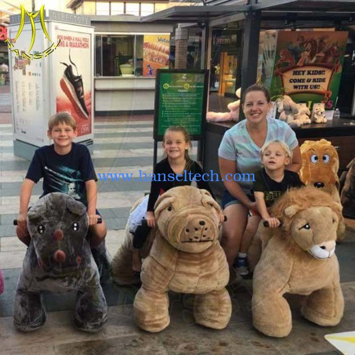 Hansel plush Motorized animals are coin operated or time setting amusement rides that work with rechargeable batteries, can go forward and turn left and right with music. They are the current trend for child amusement. the battery is rechargeable and coin operated motorized animal is making them easy to control for parties and businesses. With every purchase of a coin operated electronic animal scooter, fifty tokens will be included at no extra cost!
